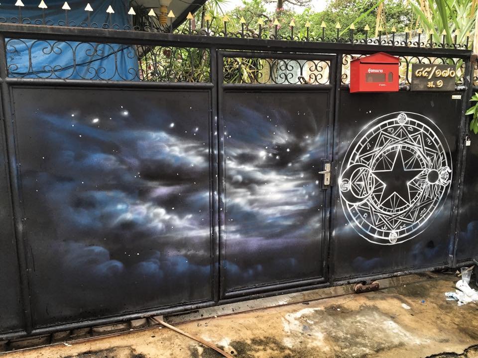 ลงบนรั้วลานจอดรถหน้าบ้านค่ะ (Symbol ตามแบบของลูกค้า/Ambient คิดสดๆหน้างานค่ะ)
